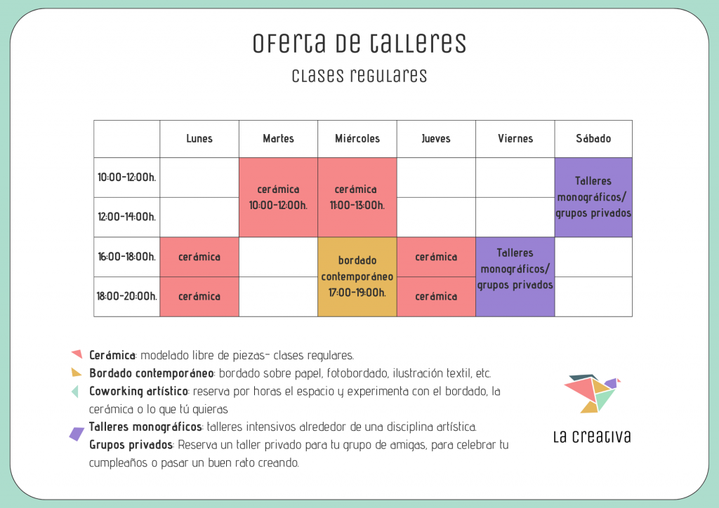 - Clases regulares de cerámica: 55€ al mes (2h. a la semana)