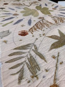 • Proyecto final: estampación de una tela de algodón con diversas plantas recolectadas.